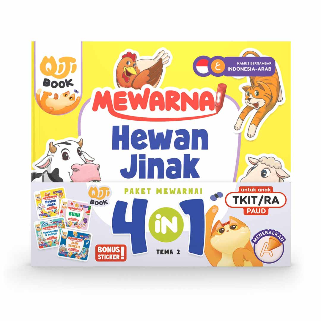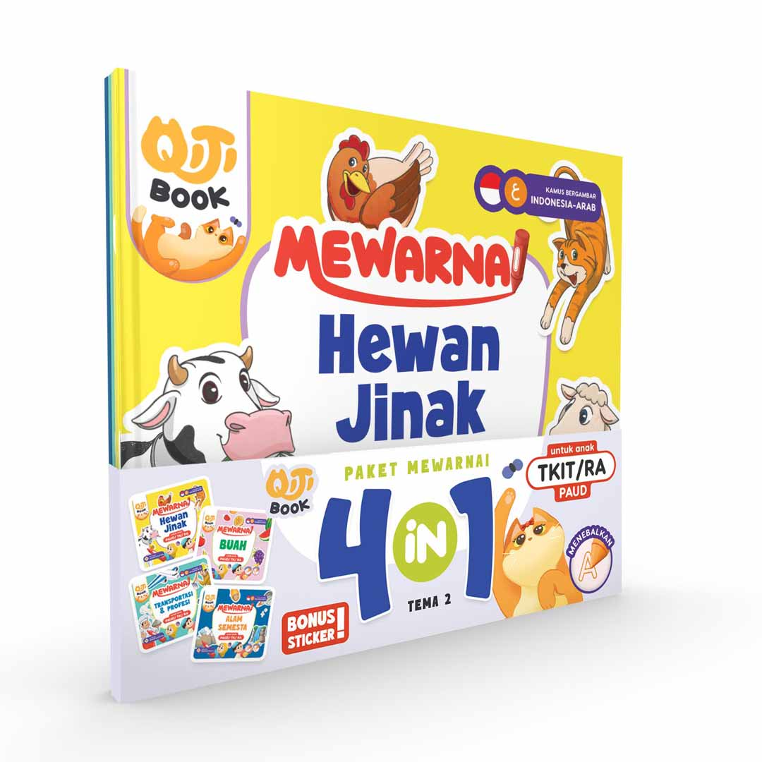 Pada buku Qiti Book Mewarnai Tema 2 dibuat dengan menarik yang disesuaikan untuk anak pada jenjang PAUD, TK dan RA. Terdapat 4 judul yang bervariatif dan menarik pada setiap tema. Pada tema 2 diantaranya Mewarnai Hewan Jinak, Buah, Alam Semesta, Transportasi & Profesi. Adanya aktifitas menebalkan dan membaca kata beserta bahasa arabnya juga menjadi metode untuk anak dalam mengingat dan mengenal kata tersebut.
